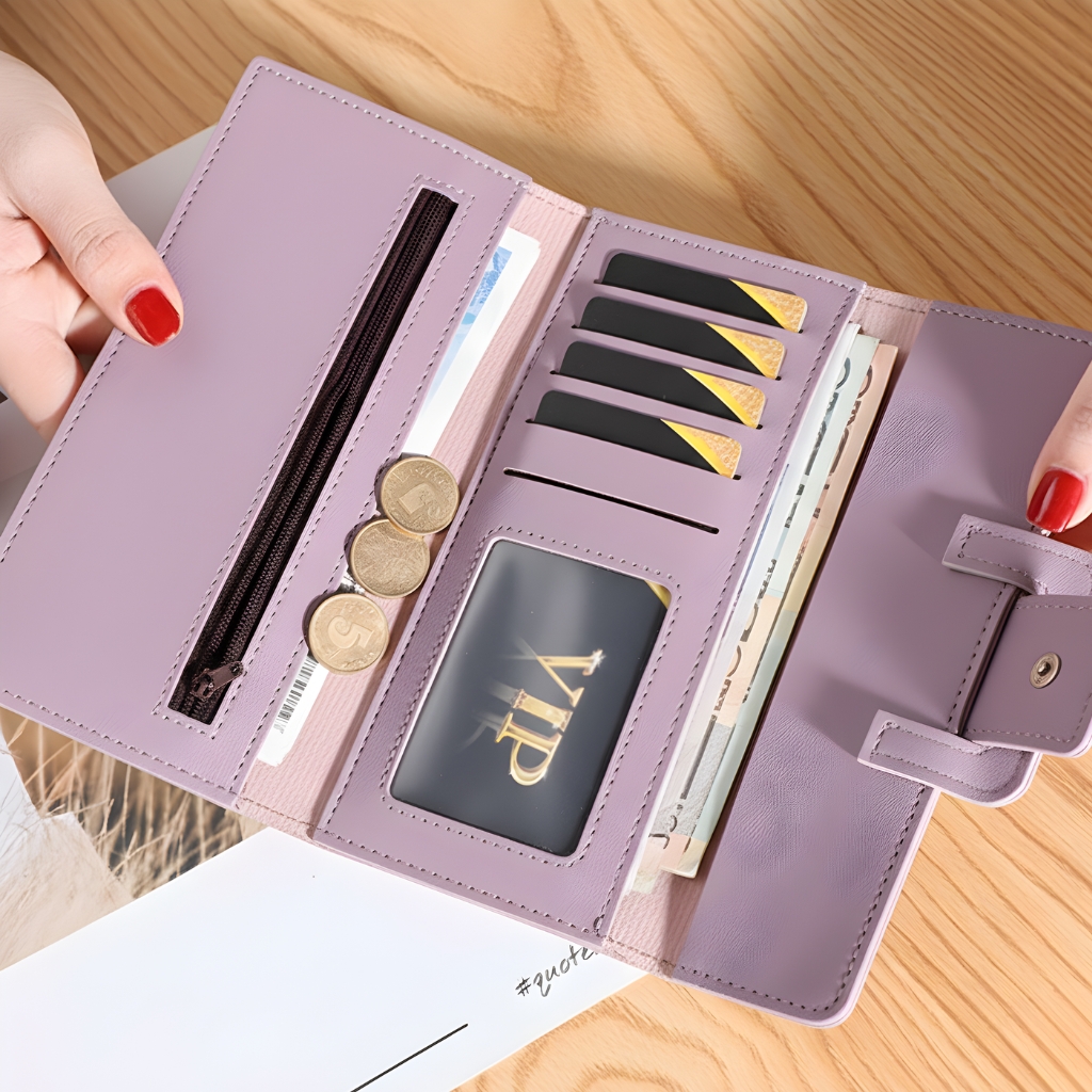 Add a pop of color to your everyday essentials with this luxury purple women’s wallet. Designed for style and convenience, it functions as a cardholder, coin purse, clutch, and phone holder—all in one. Perfect for daily use or gifting.